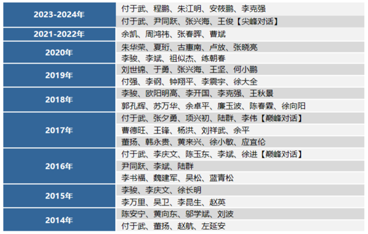 此前,该系列丛书已相继出版了《洞见汽车强国梦》《探索汽车强国路》《践行汽车强国策》《供应链与汽车强国》《汽车技术创新》《汽车产业创新》《汽车产品创新》和《汽车技术生态创新》等专著,这次发布的新书《新汽车创新战略》则是该系列的第九部专著。迄今参加过“赵福全研究院”高端对话的嘉宾名单见下表: