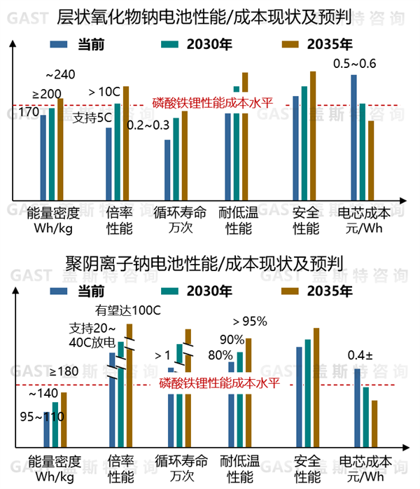 图5钠电池性能/成本现状及预判