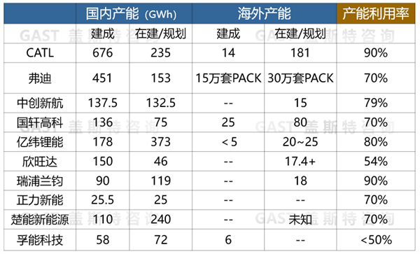 图7电池厂商产能建设情况